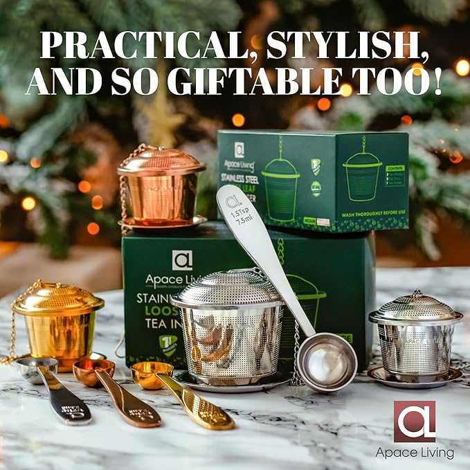• ✔ LARGE CAPACITY – MORE TEA FOR EVERYONE: Set includes 2 tea infusers, 2 drip trays and 1 tea scoop. Now you can brew tea for you and your beloved ones or a houseful of friends. Instant refreshment!