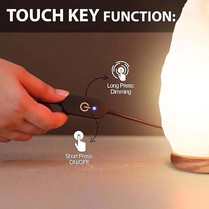 Himalayan Glow White Salt Crystal Lamp, Natural Salt Night Light, Hand Crafted Salt Lamps with Neem Wooden Base, Salts Lamp Bulb,(ETL Certified) Touch Dimmer Switch | 5-7 LBS