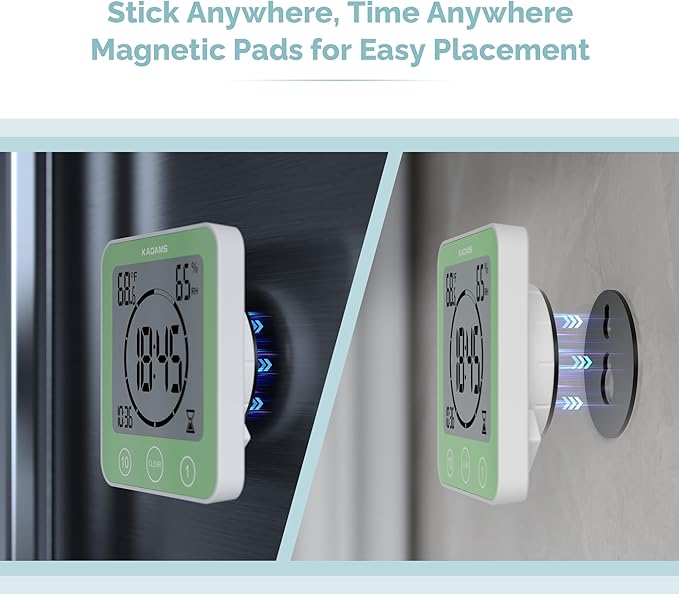 KADAMS Shower Clock Waterproof Bathroom Timer – Digital Wall Clock with Countdown, Magnetic Kitchen Clock with Temperature & Humidity, Suction Cup for Kids Shower Spa Sauna Cook Bath (Green)