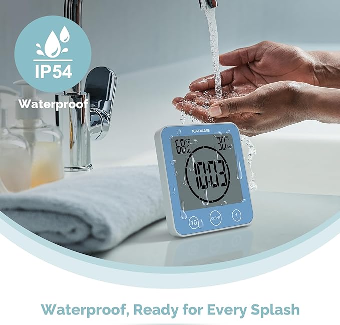 - 【 Efficient Countdown Timer】Stay organized and save resources with KADAMS water-resistant shower clock timer featuring an LCD touch display, designed to help you keep track of your daily schedule.