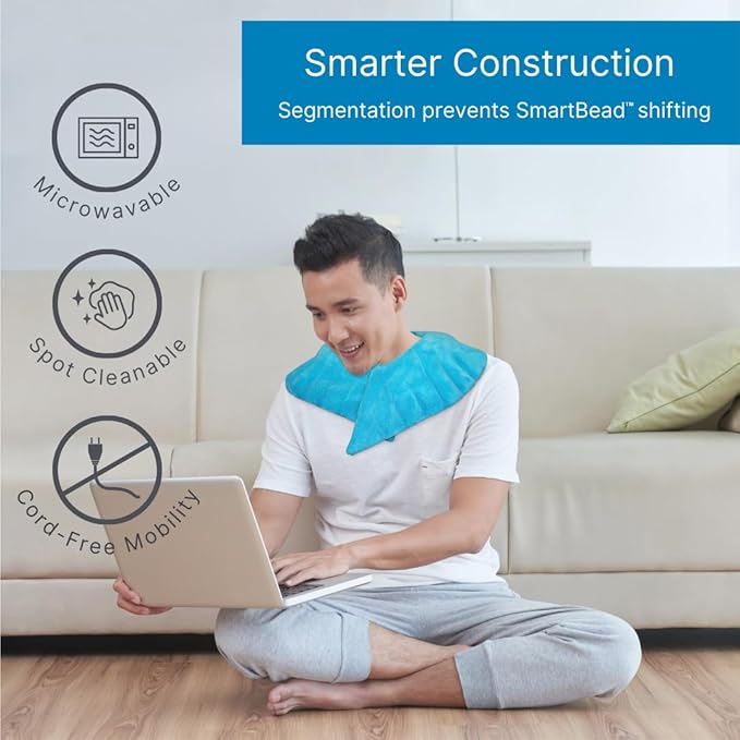 - SmartBed Technology - The horizontal back chambers ensure that the SmartBead filling remains in place for an effective moist heat treatment for neck and shoulder pain relief! Our innovative SmartBead technology enables moisture retention to ensure deep penetrating heat for neck pain relief, shoulder pain relief and back pain relief to help promote faster recovery that soothes and relaxes your body!