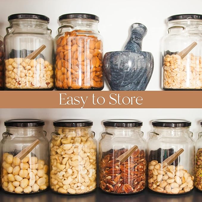 - Package includes: 4 pack wooden scoops for jars. Hand wash only and dry throughly.