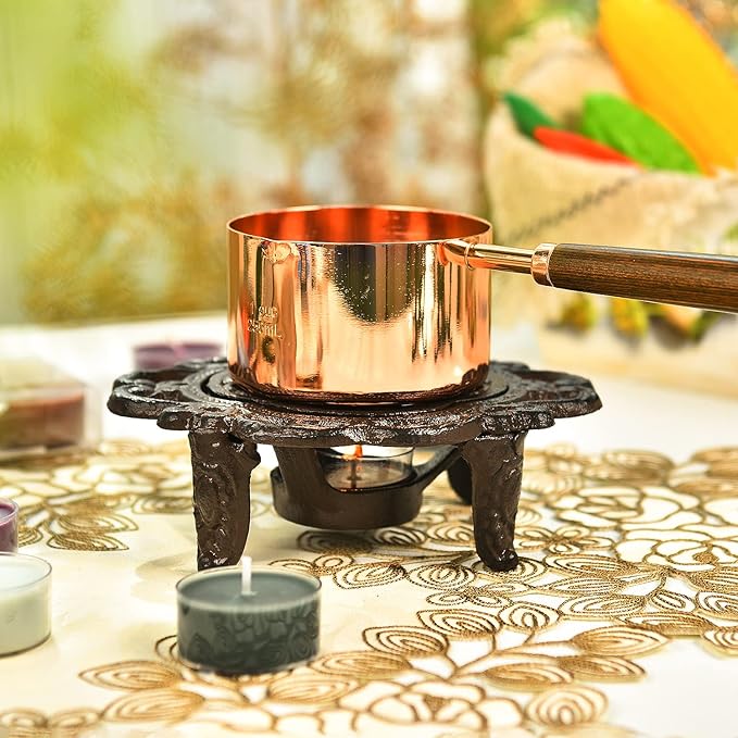 Sungmor Cast Iron Teapot Warmer Dish Cups Heater Pot Trivet - Rustic & Graceful Pattern Design with Tealight Holder - Heavy Duty & Decorative Candle Holder Stands for Heat Food Coffee Milk or Tea
