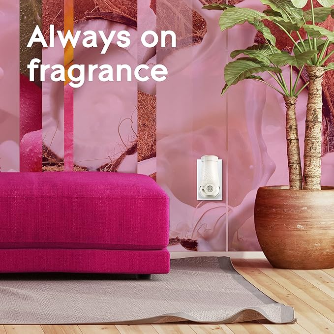 - Each air freshener oil refill offers up to 60 days of continuous diffused exotic tropical blossoms fragrance when used with the new, completely re-designed adjustable fragrance warmer on the low setting