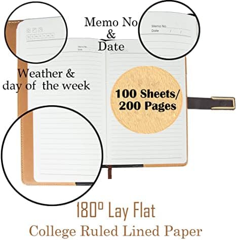 - [200 Pages Ink-proof Thick Paper Journal] - 100 GSM quality paper is excellent for fountains pens and ink. No feathering and bleeding. Light yellow paper can protect your eyesight. 200 pages diary notebook/100 sheets college ruled lined notebook papers, good for daily use. Lay flat design, let you reading more easy and note-taking efficiency. Enjoy your writing by hand with no distractions. Perfect as journal for writing, travel notebook, business a5 notebook, teen journal, back to school gift.