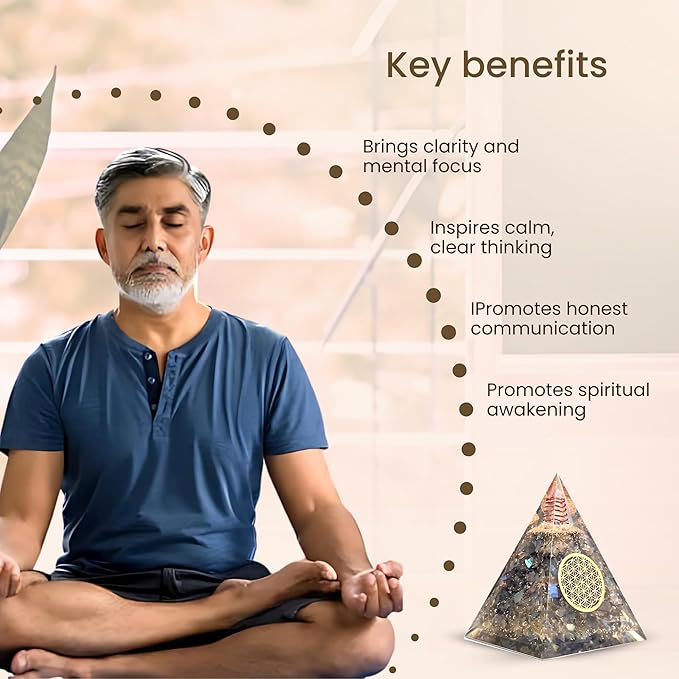 Orgone Pyramid Flower of Life Orgonite Money Healing Crystals Pyramid for Positive Energy (Labradorite)