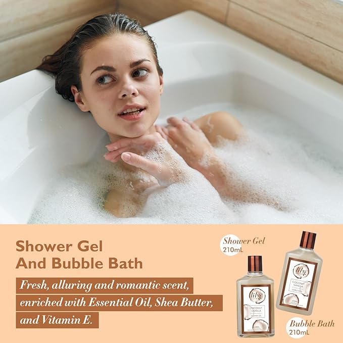 - BATH GIFT BASKET SET FOR WOMEN: Coconut vanilla has a warm, sweet scent, and this bath set creates a warm feel like a holiday