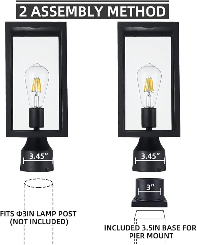 - ●[Size and Application]Post Lantern :6 "(L) x 6" (W) x 14.7 "(H). Pier mount base: 3.5 "x 3.5", available for 3" pole mount or pier mount. Pole light adapts to any outdoor environment (WET LOCATION): Garden,yard, patio, balcony, porch, passage or entrance etc.
