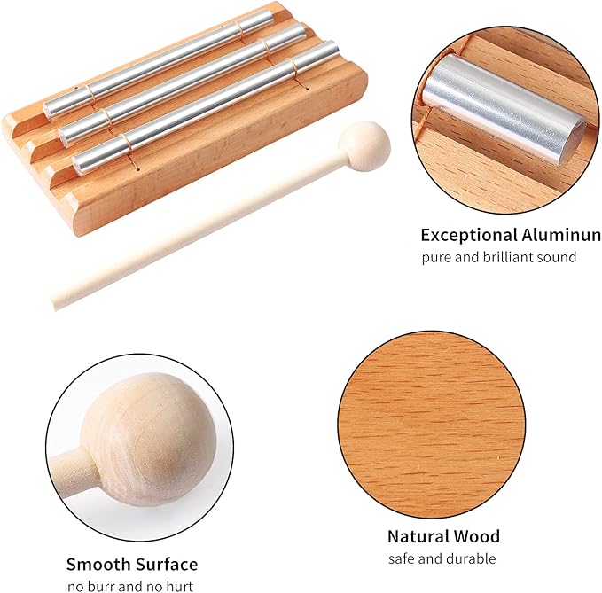 - Music Enlightenment: A nice and simple musical gift for music beginners to develop their musical sensibilities, just a gentle tap with the mallet, the trio chime emits smooth and powerful sounds that inspires, entertains and delights people of all ages, making it a great helper for music beginners
