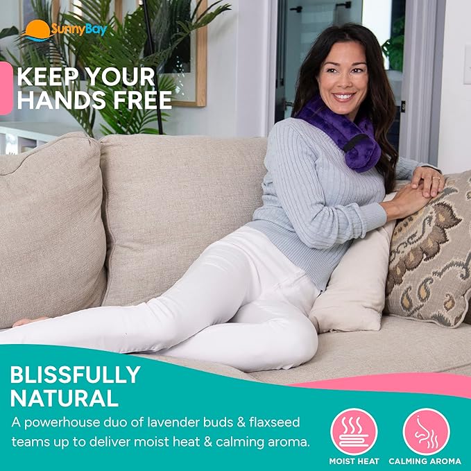 SunnyBay Microwave Heating Pad, Microwavable Heated Neck and Shoulder Wrap with Wide Neck Coverage, Hands-Free Moist Aromatherapy Hot Pack with Lavender, 26x7 Inches, 2.5 lbs, Purple