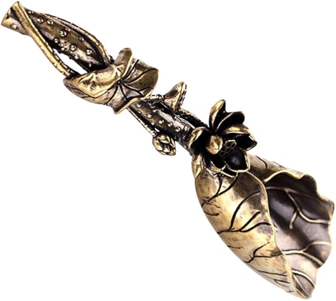 - Vintage Tea Scoops Lotus Leaf Shape Loose Leaf Tea Copper Brass Tea Shovel Decorative Measuring Shovel for Coffee Condiments Sugar Pets Food