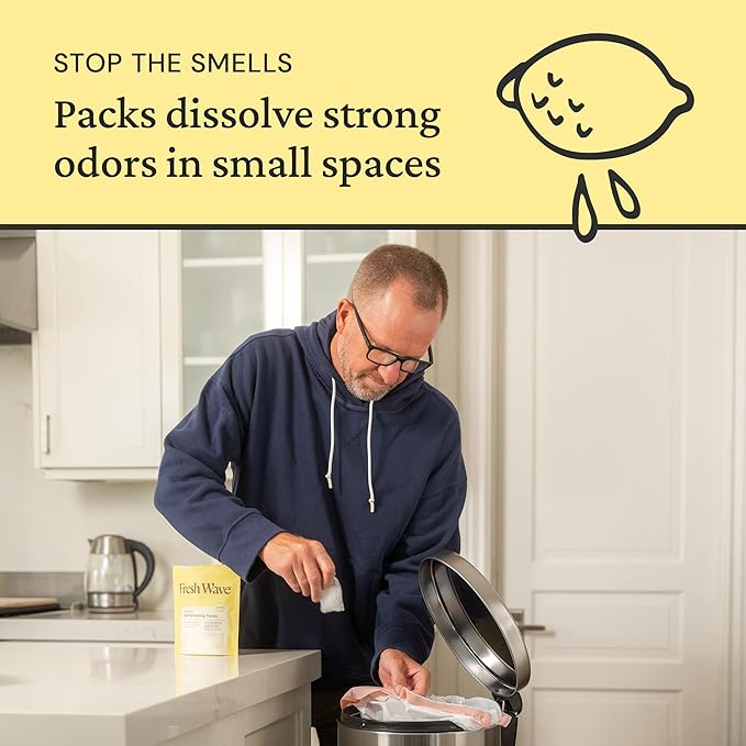 Fresh Wave Lemon Odor Eliminating & Deodorizing Packs | Bag of 6 | Safer Odor Relief for Small Spaces | Natural Plant-Based Odor Eliminator | Odor Absorbers for Home