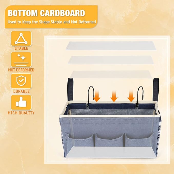 - 【Wide Application】Keep your items close to you for convenient access. The bunk bed storage caddy stores all your belongings together, such as laptop, mobile phones, books, water bottles, data cables, etc; Suitable for home school dorm bunk beds, hospital bed rails, crib rails or camping.