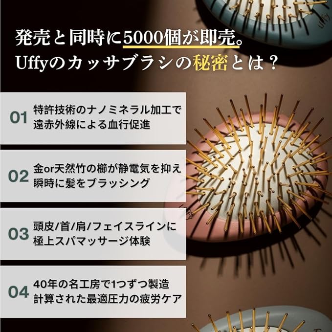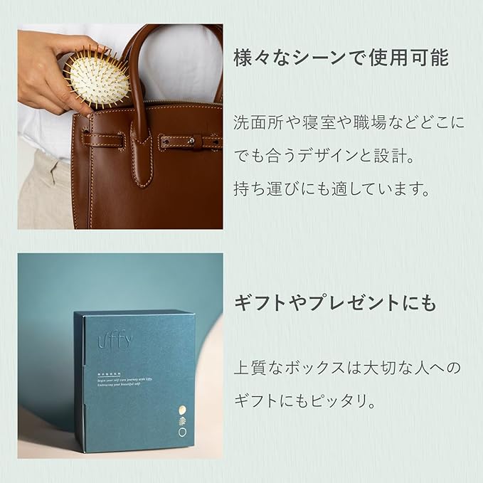 - 【GENTLE BAMBOO BRISTLES FOR SENSITIVE SCALPS】 Uffy's flexible bamboo bristles provide a soothing massage for sensitive and itchy scalps. Regular use targets pressure points, promoting scalp health and addressing hair thinning, shedding, and postpartum hair loss.