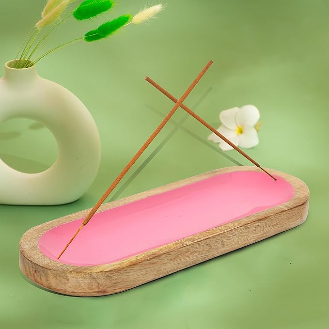 Hand Painted Pink Incense Holder-Incense Burner/Ash Catcher/Handmade Wooden Insence Tray – Modern Gift Home/Room/Kitchen Décor Size 11x4x1.2 Inches