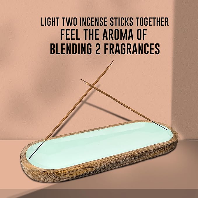 - STUNNING INCENSE HOLDERS FOR STICKS: No more mess of ashes, Easy to clean and maintain.. This Premium Wood Incense Holder catches all the ashes, has an appropriate size (11 x 4 x 1.5 Inches). The beautiful Hand painted colored surface with a natural rustic wood finish of Inscent Holder makes this a functional ornamental piece for your living room, workspace, or meditation room.
