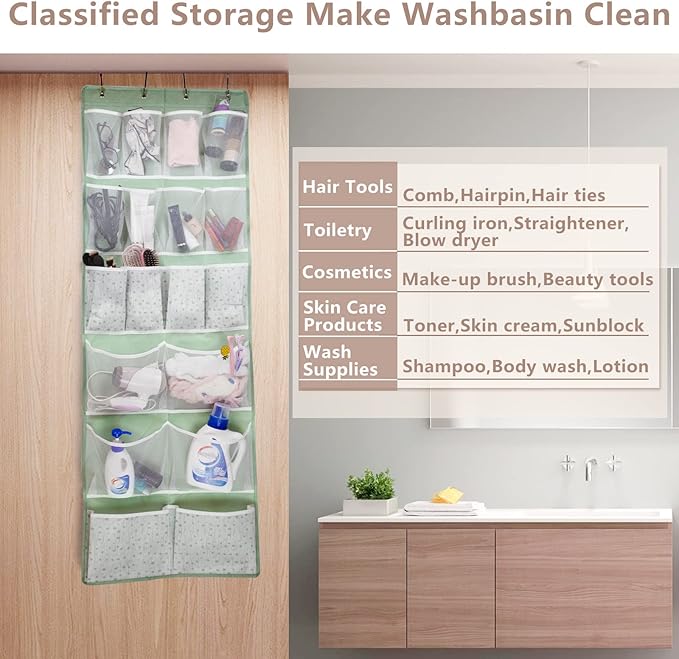 - 【6/18 of Pockets with Stylish Green Design】: The behind door hanging storage organizer has 6 fabric pockets,4 small and 2 big compartments, effectively protects privacy well.Adds a vibrant scene of elegance to any room with its chic design. It not only helps you stay organized but also serves as a stylish decoration for your home or closet.