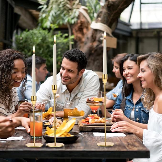 - Candlestick Holders candle holders fit all standard size taper candles.Suitable for 3/4 inch candles and led taper candles.Made of high-quality metal materials.Bright surface, brushed metal design, shiny luster.Gold Candlestick Holders,High quality and Pretty golden color .