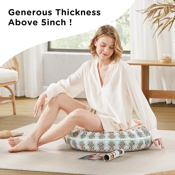 - 【Extra Large Size】: Floor pillows are 32 inches in diameter, providing plenty of space and support for comfortable seating whether you're meditating or lounging. Their large surface area offers great support for better posture during long use, making them perfect for relaxation.