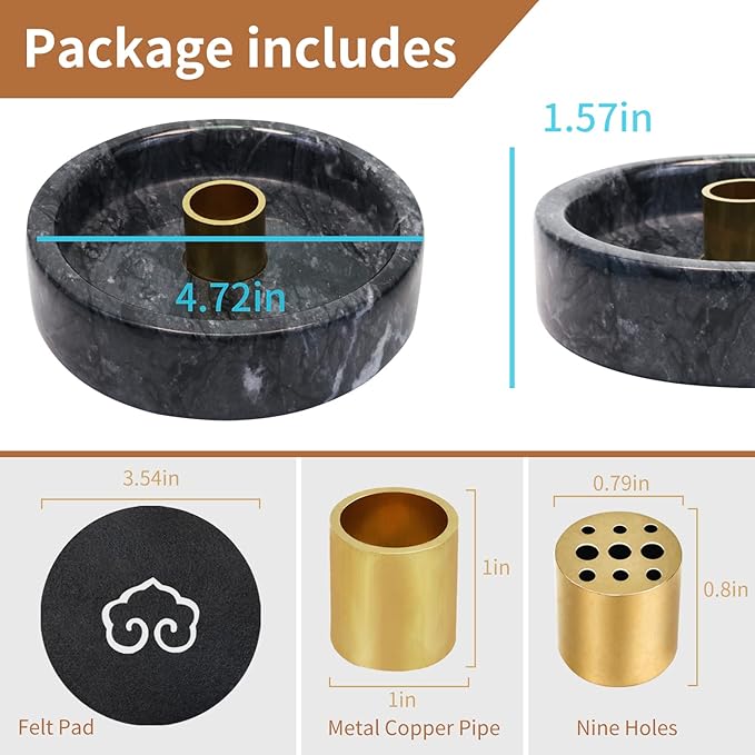 - 【You Will Receive】: 1 pcs marble incense holder, 1 pcs nine-hole incense stick, 1 pcs backflow incense holder , 1 felt pad. White sage bundle and Palo Santo incense stick are not included in the package