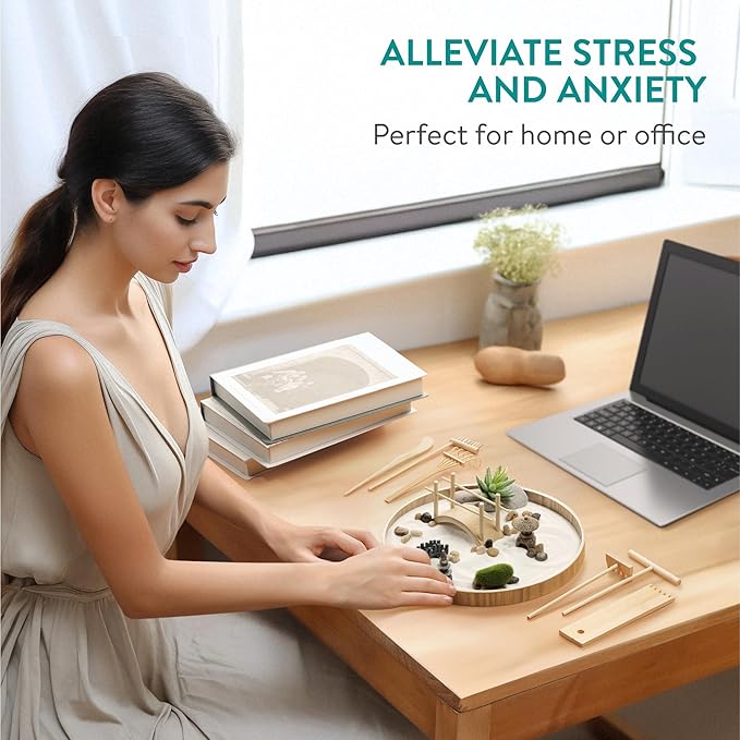 - Elevate Your Space: Transform your home or office into a tranquil sanctuary with our Zen garden kit. Crafted for those who appreciate serenity, this kit doubles as a unique decor piece that adds a touch of mindfulness to any environment.