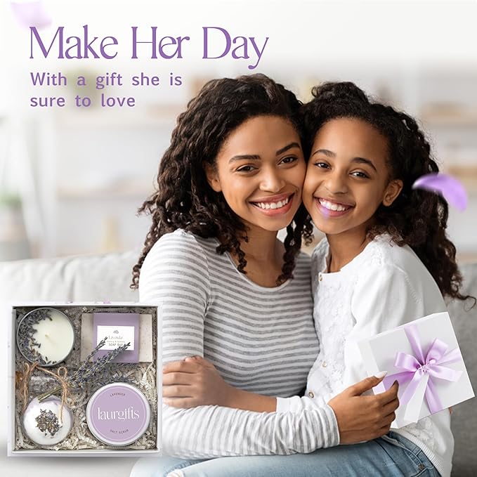 - RELAXING SPA EXPERIENCE – Compact lavender gift set includes candle, bath bomb, soap, bath salts, and salt scrub. A thoughtful self care basket for women that blends aromatherapy and relaxation.