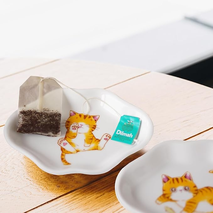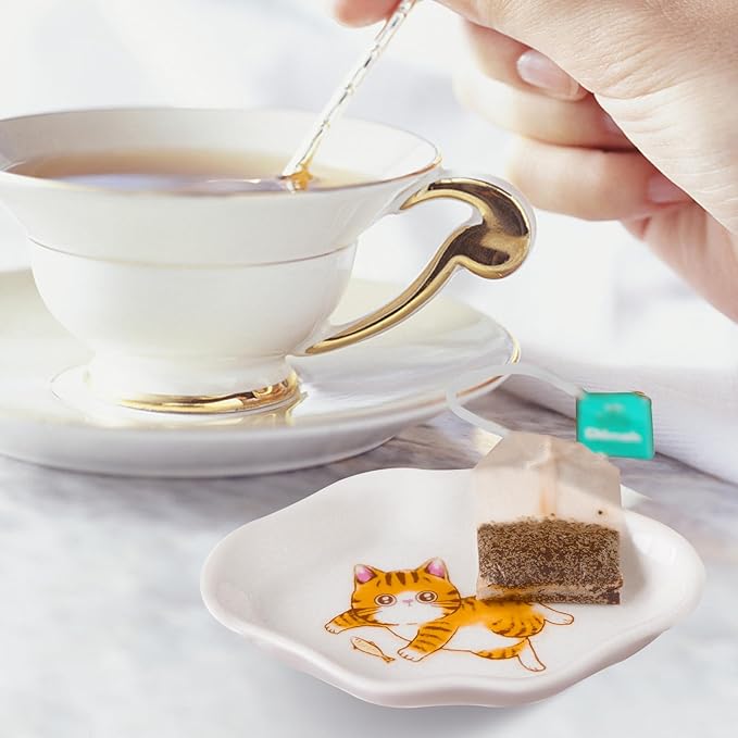 - Set contains 4 cute orange cat pattern tea bag holders, high temperature fired ceramic is dishwasher, freezer, and microwave safe.