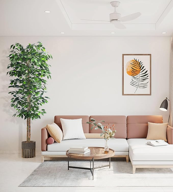 - 【Highly Realistic Artificial Trees】1008 thick ficus leaves made of superior polyester fabric are printed with a realistic texture of lifelike appearance and vivid color and will bring you a natural feeling while touching. Our ficus plant features delicate natural stems and silk leaves, and they’ll look fantastic and have a long lifespan.