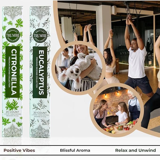 - Versatile and Complete: Our Eucalyptus and Citronella incense combo pack provides you with meditation incense for relaxation, allowing you to create a serene ambiance.