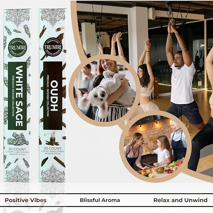 Trumiri Incense Sticks - Combo Pack of 40 Insence-Sticks - 20 White Sage + 20 Oud - Insenses - Insents - Incents - Inscense - Incence - Incienso - All Natural Incense Sticks