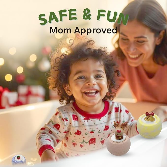 - Long lasting fizz with fun colors and scents - As our bath bombs dissolve in the water they release vibrant colors and scents that capture the magic of the Christmas season. Each bath bombs is thoughtfully packaged with care. A perfect kids bath bombs for girls or boys, bubble bath bombs kids, bath fizzies with toy inside, kids bubble bath bombs, kids bath bombs for girls.