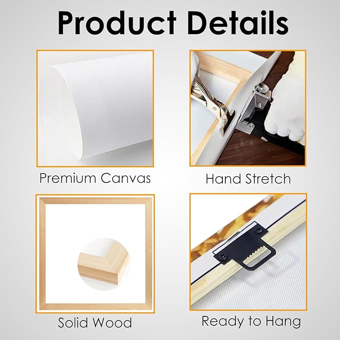 - READY TO HANG:A black hook is installed on the sturdy wooden bar for easy hanging. The Canvas art is neatly stretched and mounted on the frame, and superb experience in mounting skill makes the frame durable, fabulous and flat. Very easy to hang and decorate your wall.