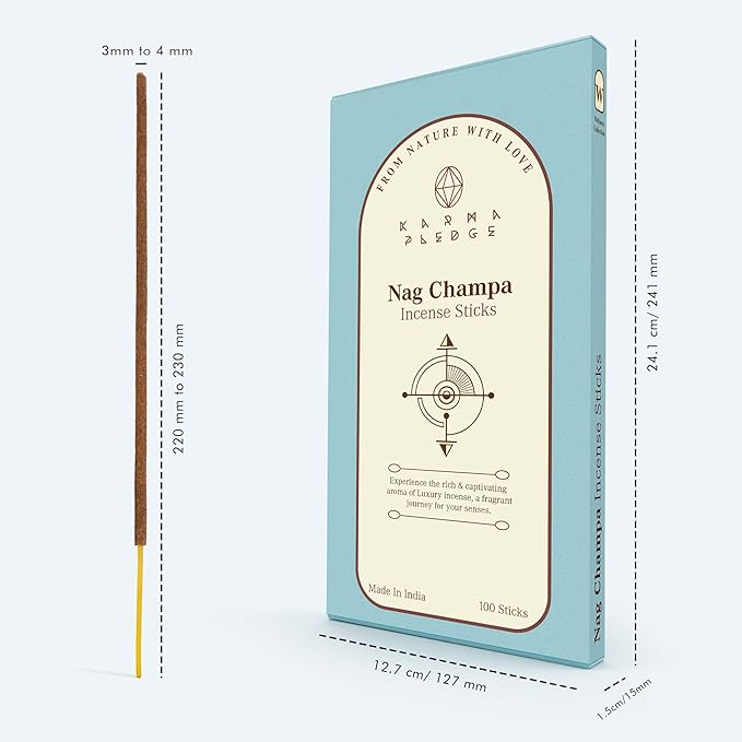 Nag Champa Incense Sticks, Organic Hand Dipped 100 Sticks with Natural Herbs & Aromatic Ingredients, Burn Time 45 to 60 Minutes, Incense for Positivity, Yoga, Meditation, Relaxation, Spiritual Gift