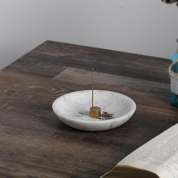 - Versatile Marble Bowl: incense burning, peace coming. The incense holder for sticks can be widely used in living room, bedroom, office, meditation room, yoga room, hotel etc. you could use this as a jewelry dish or candy dish even. Or use it as your elegant jewerly bowl!