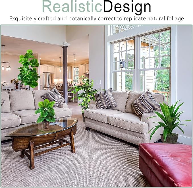 • REALISTIC DESIGN: This 4 Pack includes four artificial Ficus Trees of varying sizes, each featuring a real-wood trunk and lifelike foliage, making them perfect additions to your living room, office, or kitchen, adding a touch of nature without the upkeep.