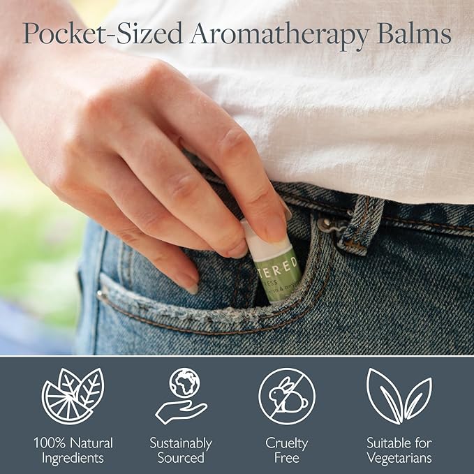 - Six Unique Balms for Every Moment – Includes mini versions of our signature balms: 'Sleep Well' for restful sleep, 'De-Stress' for relaxation, 'Focus' for mental clarity, 'Escape' for mindfulness, 'Happy' to uplift your mood, and 'Love' for emotional balance and support. Each balm functions as a compact essential oil inhaler and aromatherapy pen with soothing scents.