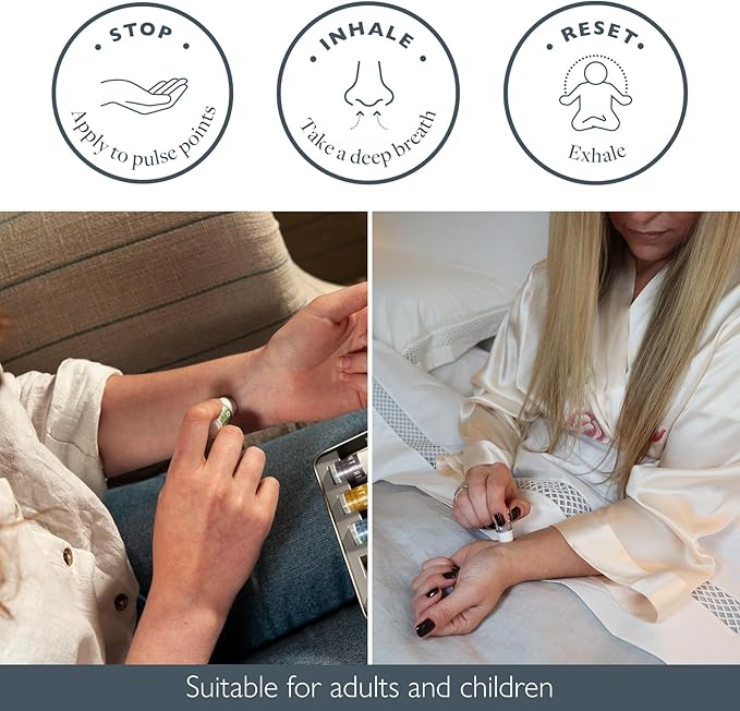 - Stop. Inhale. Reset: Easy & Mess-Free – Apply the balms directly to pulse points for therapeutic support throughout the day. With a non-greasy formula, they’re mess-free and simple to use anytime, anywhere - even inside face masks. Suitable for both adults and children. A portable aromatherapy inhale blend set for your daily routine.