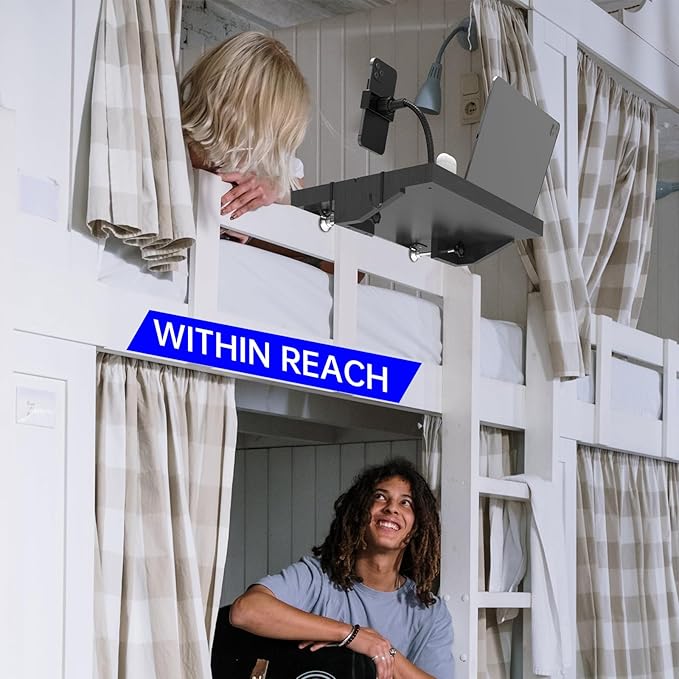 - 【Great Alternative to the Nightstand】: Climb down from the top bunk bed just to get back something you forgot from the floor or living room. With this bedside shelf for bed, your phone, charger, alarm clock, drink, iPad, headphones, or anything else you might carry with you in bed is just an arm's throw away. This bed shelf provides an instant nightstand or desk while saving floor space, making it a great alternative to a nightstand in cramped rooms or bunk beds.