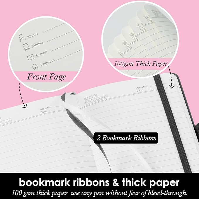 - 【Pocket Notebook Function】1. Small note book with elastic holder loop, double stitching will not fall off; 2. Elastic closure attached to back cover keeps small notepad closed; 3. Two bookmark ribbons can mark the position of your writing.