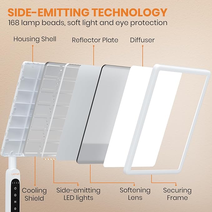 - FULL SPECTRUM LIGHTING:12000LUX, White standing floor light therapy lamp built-in 168 lamp beads, wide range of irradiation, side luminous, emits eye-care soft light, bright light therapy improves sleep habit