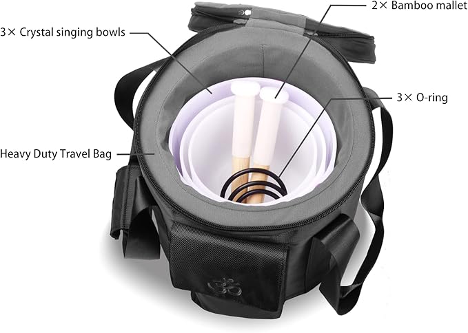 - What You Get: Our singing bowls meditation set comes with a 7-9 inch 3 white singing bowls, as well as mallet, O-ring, and for convenient storage, easy transport, and enhanced protection for your accessories.
