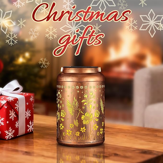 - Graceful Decorative Design:The retro appearance, with gold copper color and hollow out metal veneer, the solar outdoor lanterns casts bright and warm light in darkness, accompanied by gorgeous and graceful hummingbird patterns, adding a beautiful atmosphere to the surrounding environment.