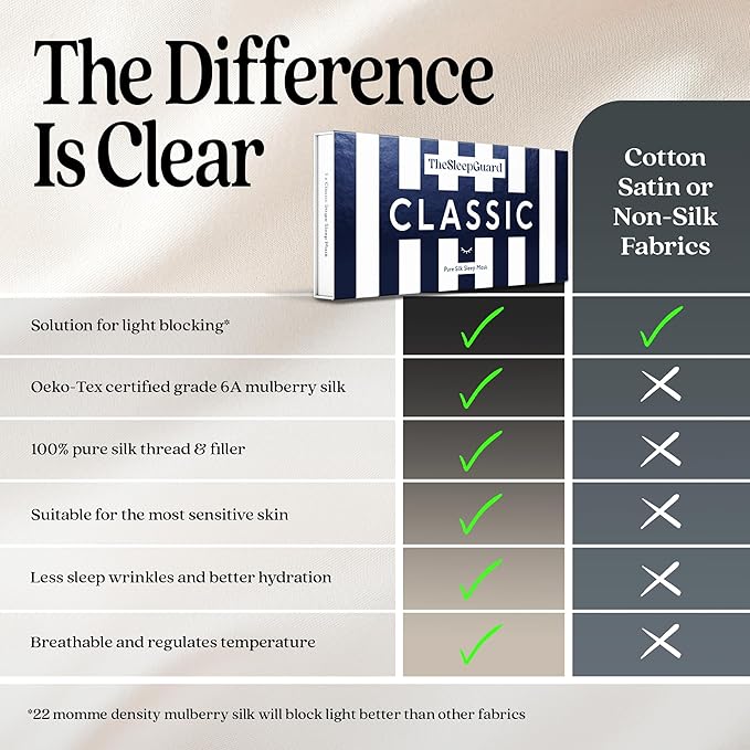 - โ INVEST IN YOUR SLEEP - Experience TheSleepGuard difference with our luxury sleeping masks. Crafted from the highest grade 6A Mulberry silk at 22 momme and certified by Oeko-Tex to ensure you sleep soundly. Remember, better sleep leads to a better you.