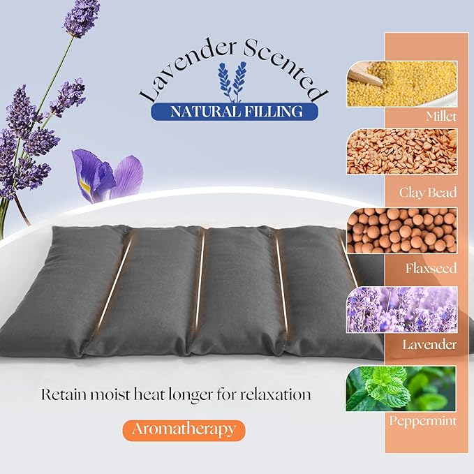 - Natural & Lavender Scented: The microwavable heating pads are filled with flaxseed, millets, clay beads, lavender and peppermint, which help to relax, restore, and rejuvenate. The rice pack provides long-lasting moist heat, effectively easing cramps, sore muscles, menstrual pain, and stress