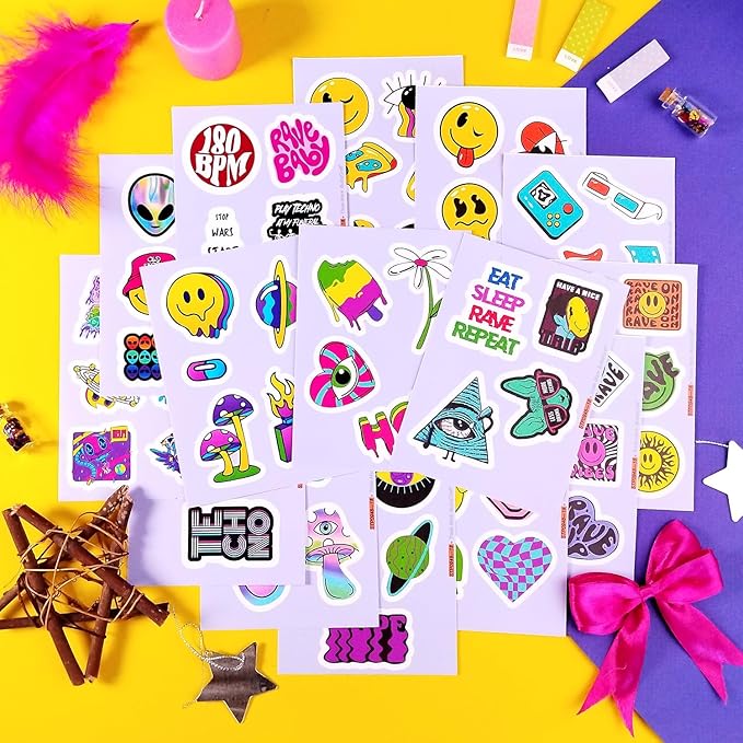 - PERFECT GIFT - Surprise your friends and family with these fun and expressive rave stickers, perfect for any occasion. Stickers are a great gift for anyone who loves personalizing their belongings.