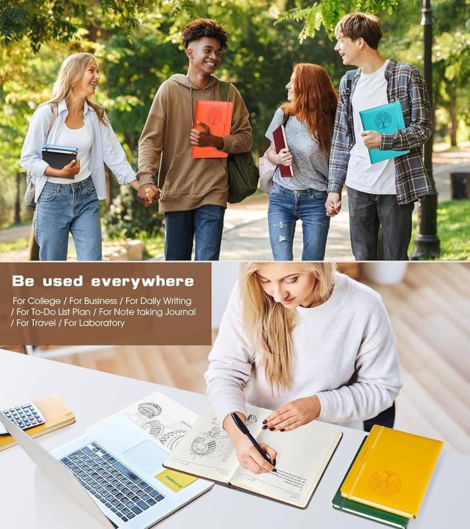 - 【180° Lay Flat Design】The 180° lay flat design makes writing easier, reading more convenient, and taking notes more efficient.At the same time, the hardcover notebook is designed with elastic closure band to make it tightly closed to protect your content, and the inner paper will not be curled and kept flat.