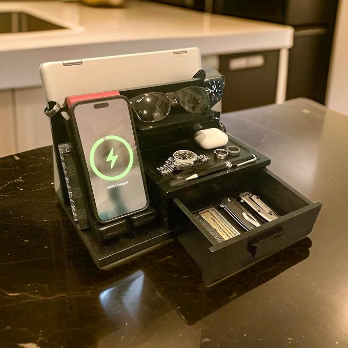 - 🎁 UNIQUE, USEFUL GIFT IDEA FOR EVERY MAN OR WOMAN: This phone docking station is the perfect present for any fella in your life; Surprise them with one for their birthday or Christmas, Father's Day, graduation, anniversary, retirement, and other special occasions