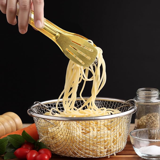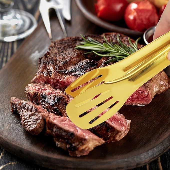 - [TONGS FOR SERVING FOOD] Kitchen tongs are perfect serving utensils for buffet, BBQ, parties and dinners. The small tongs can easily pick up fruit, appetizers, steak.
