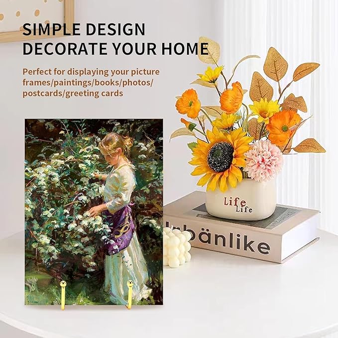 - Multi-functional -- These gold picture stand are very useful for painted tiles, canvases, decorative plates, picture frames, postcards, cookbooks, musical instruments and any other artworks. A good helper for kitchen, library, home, office, cafe, bookstore, showroom and etc