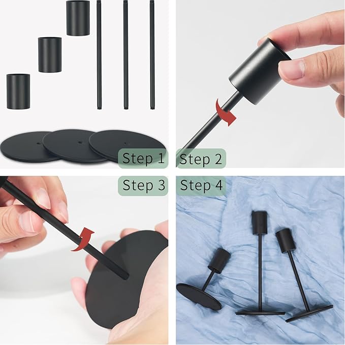 - [Easy to Assemble] These candelabra candle holders are very easy to assemble, just connect the candle cup with the candlestick rod, and then screw it into the base to complete the installation;And it can be quickly disassembled when not in use, easy to store, does not occupy too much place.